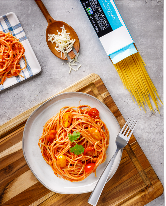 INGREDIENTS 1 box FG Light Rotini, cooked A generous handful of cherry tomatoes, halved 3-4 frozen pesto cubes (or your preferred pesto) A drizzle of olive oil A pinch of...