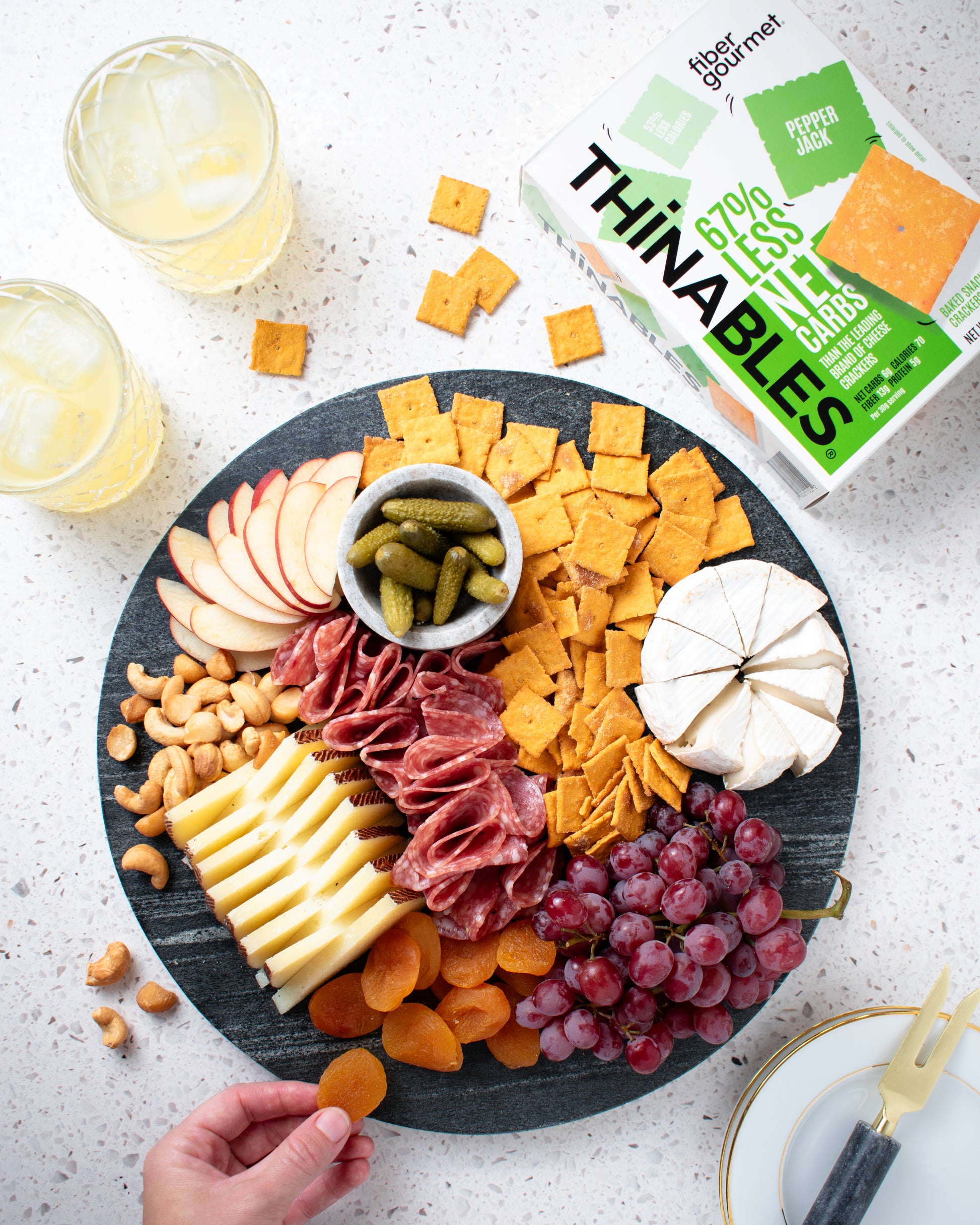 Fiber Gourmet Pepper Jack Thinables bring the bold, zesty kick of real pepper jack cheese to every crispy, satisfying bite. Each 30g serving packs only 70 calories and 6g net carbs, making it easy to snack smarter without sacrificing flavor. With a powerful boost of 13g fiber (thatโs 46% of the daily recommended amount) and 5g protein (66% more than leading brands), these crackers keep you full and energized. Enjoy 67% fewer net carbs and 53% fewer calories compared to mainstream cheese crackers, all in a clean, crave-worthy snack thatโs Kosher certified (OU-D), Women Owned, and proudly Made in the USA.